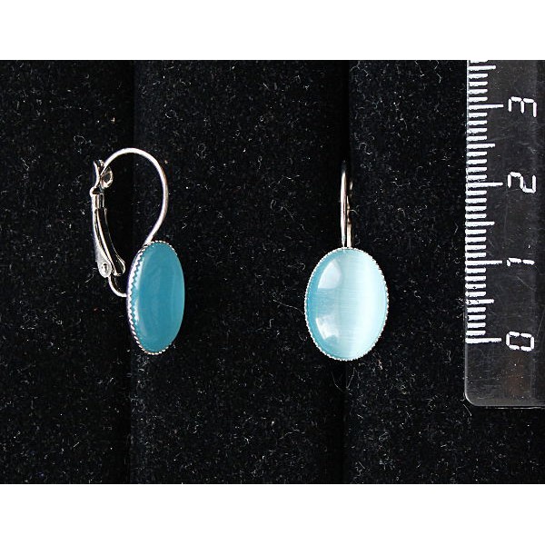 Cерьги из кошачьчего глаза (синт.), цвет голубой, овал 14х10мм, замок петелька