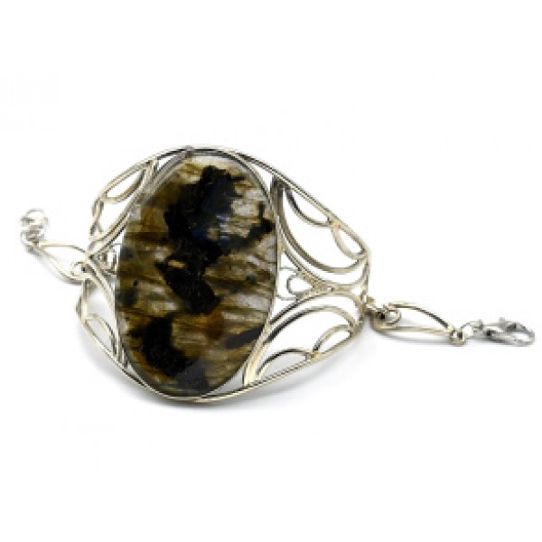 Брошь из лабрадорита, с ажурным контуром, цвет ан..