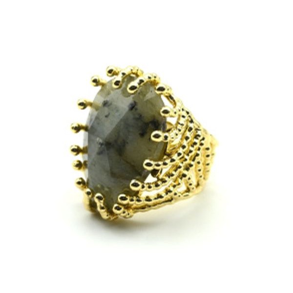 Большое кольцо с лабрадором из ювелирного сплава