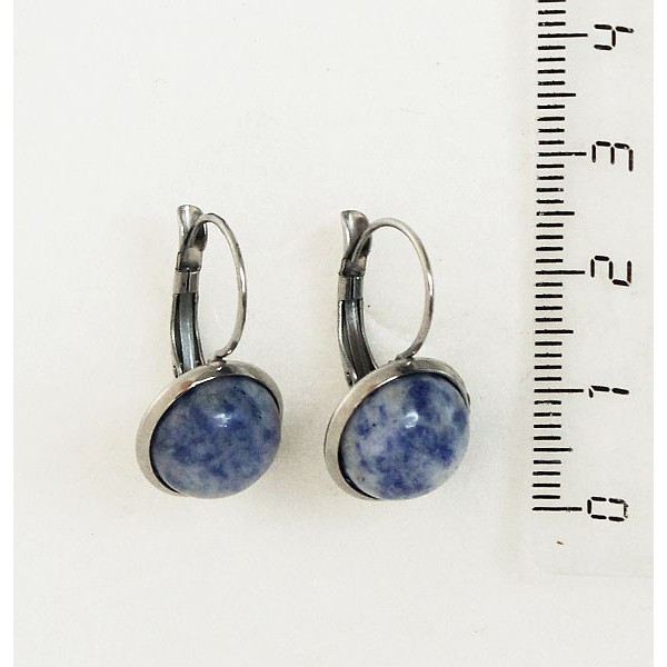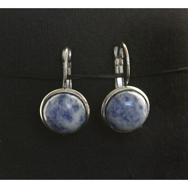 Cерьги из лазурита (бело-синий), круг 12мм, нерж. сталь