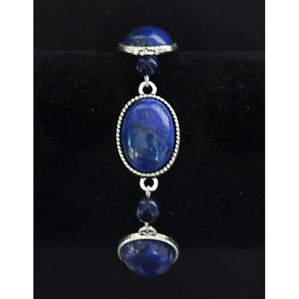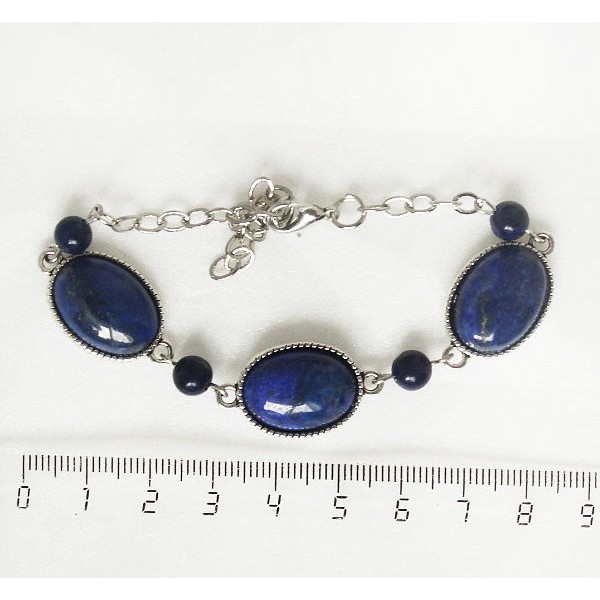 Браслет из лазурита (темно-синий), овалы 18х13мм + шарик 6мм, цепочка