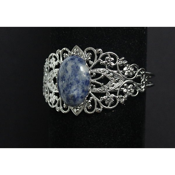 Браслет из лазурита бело-синего, филигрань, ручная работа, камень овал 25х18мм, овал 18х13мм