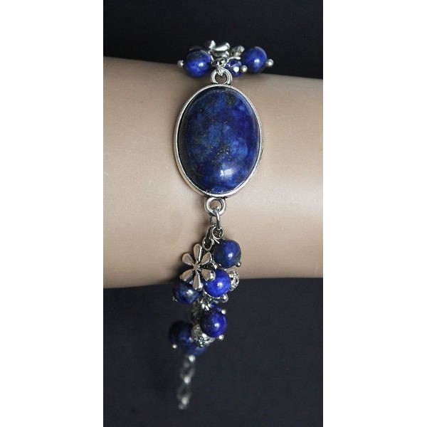 Браслет из лазурита (синий), овал 25х18мм + шарик, на цепочке