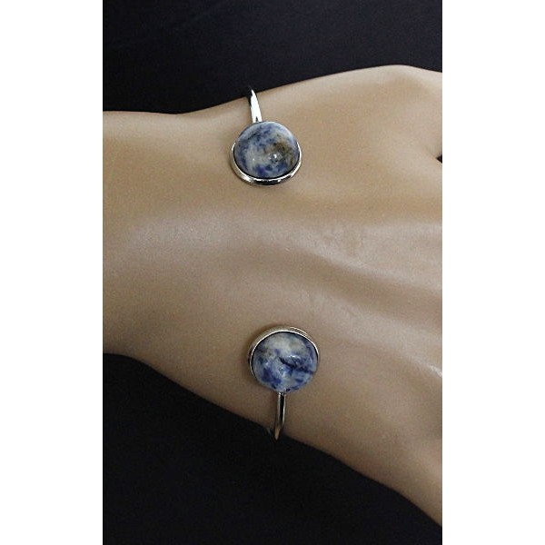 Браслет из лазурит бело-синий 2 круга 12мм, жесткая основа