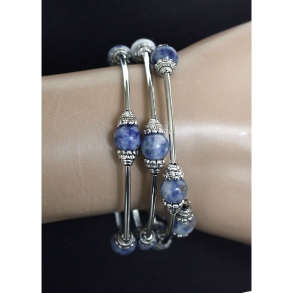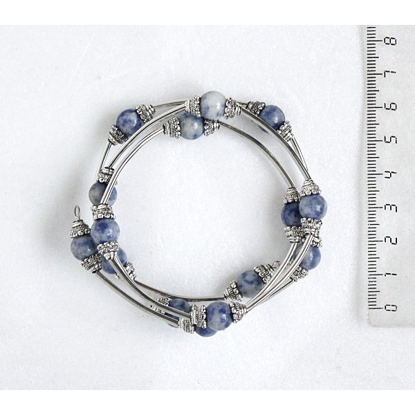 Браслет из лазурита (бело-синий) на пружинке, шарик 8мм