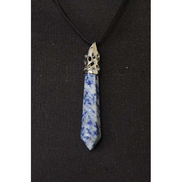 Кулон из лазурита бело-синего "кристалл", с металлическим узором