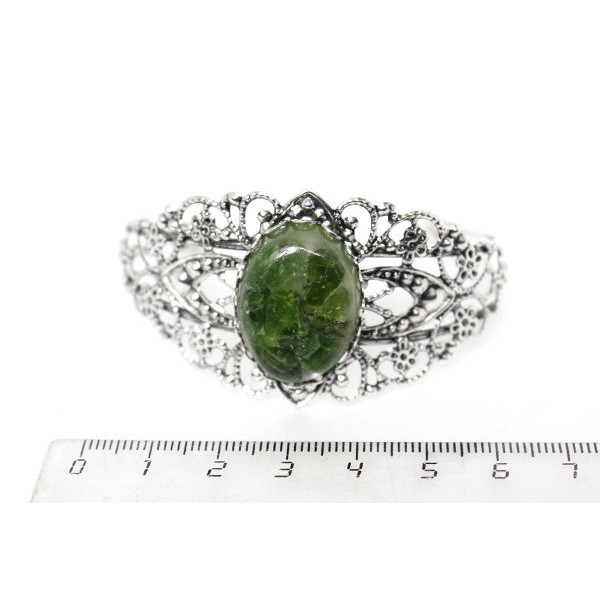 Браслет из хромдиопсида (кабошон-мозаика), овал 25х18мм, жесткая основа, цвет ант.серебро