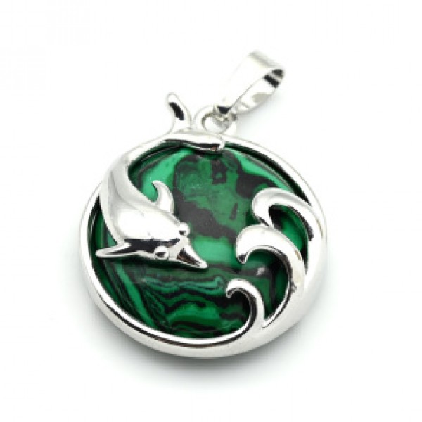 • Кулон Дельфин 24*26 с малахитом искусственным (иск.)