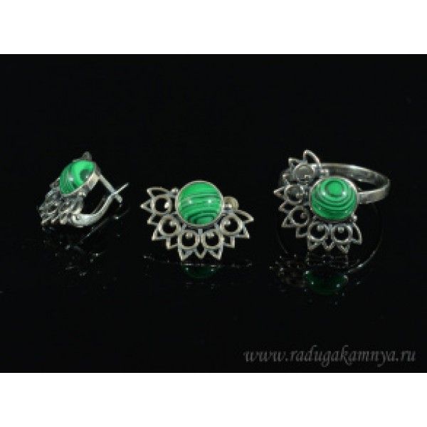 Кольцо и серьги с малахитом (имитация) (иск.)