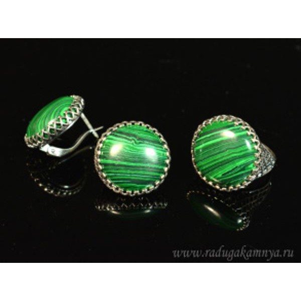 Кольцо и серьги с малахитом (имитация) (иск.)
