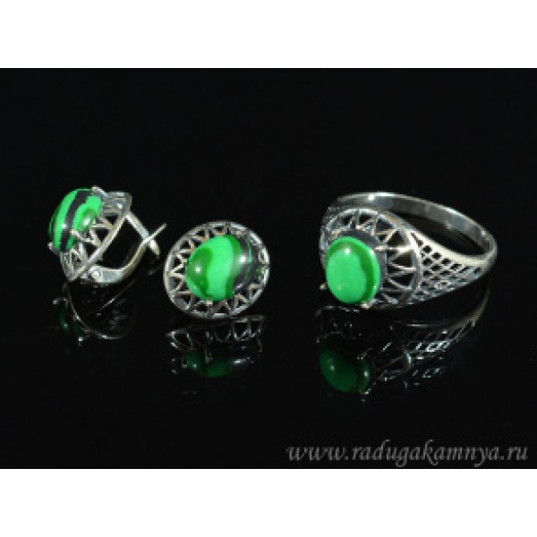 Кольцо и серьги с малахитом (имитация) (иск.)