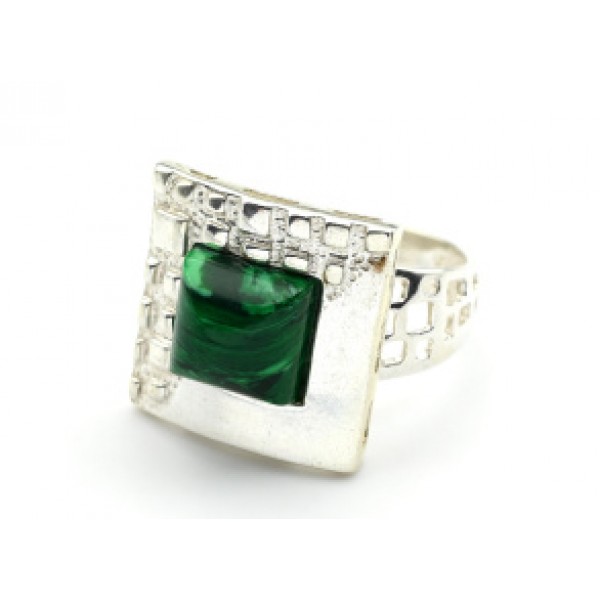 Кольцо С 925 с малахитом искусственным квадрат 16мм , 5,04гр (иск.)