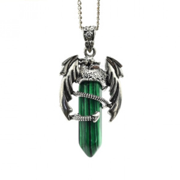 Кулон Дракон 25*41мм с малахитом искусственным