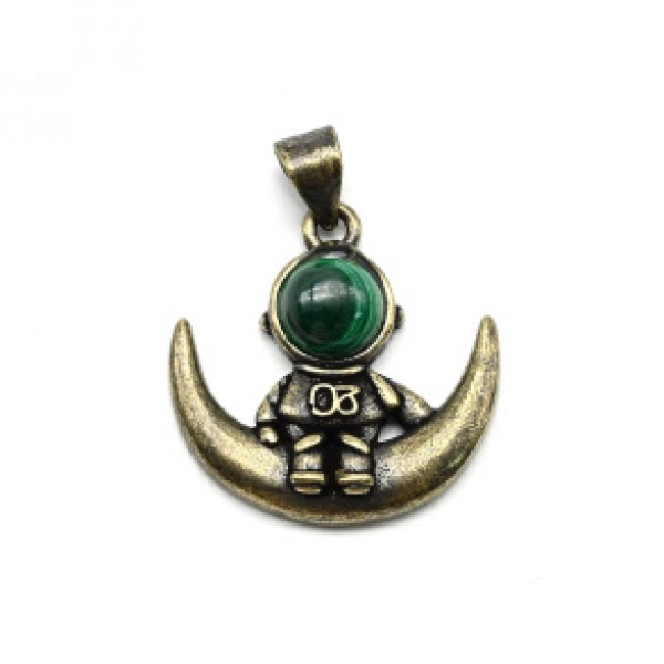 • Кулон с малахитом Космонавт 19мм