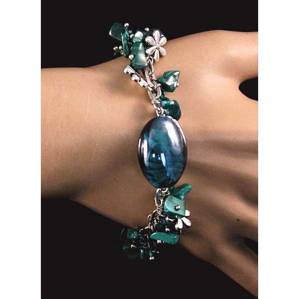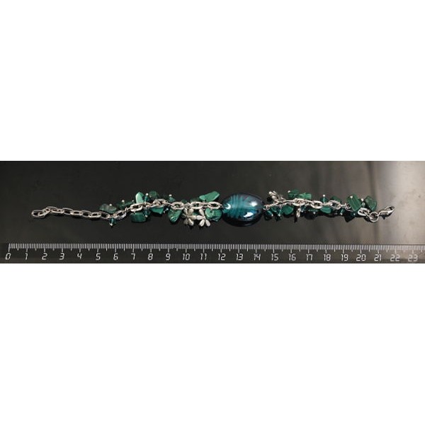 Браслет из малахита (галтовка) и муранского стекла (овал), на цепочке