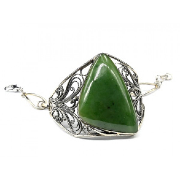Брошь из нефрита "вензель", основа 70х2.4мм, овал 18х13мм, подвеска зеленая