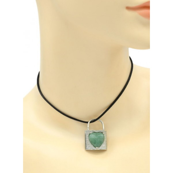 • Кулон в виде Замка с сердцем 22*31мм с нефритом прессованным  в металле