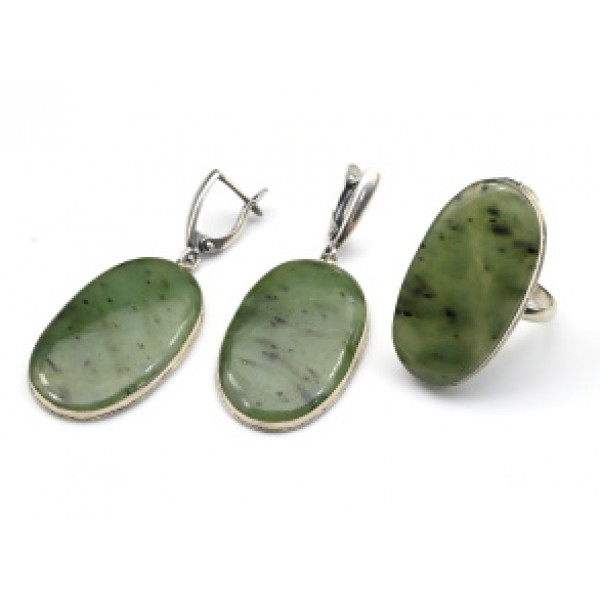 • Кольцо и серьги нефрит "Овал"
