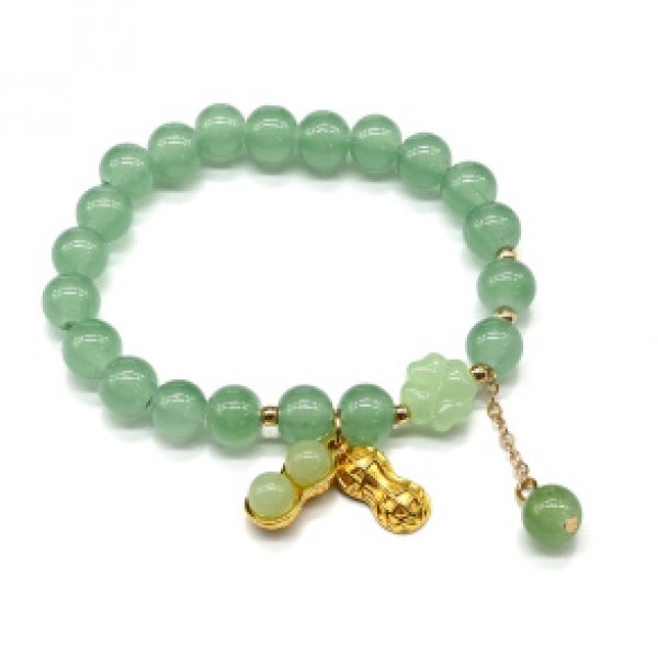 Браслет из нефрита (имитация) с подвеской Орешек шарик 8мм