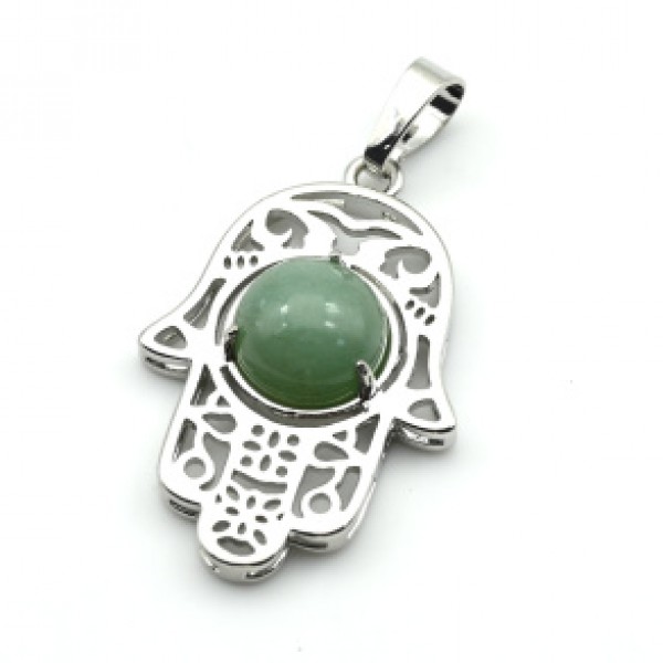 • Кулон Рука Фатимы 22*30мм с нефритом прессованным в оправе из ювелирного сплава