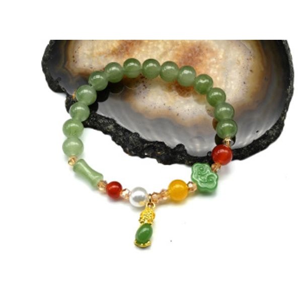 Браслет из нефрита (имитация) с подвеской шарик 8мм, 17см