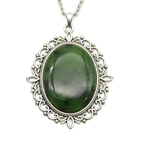 Кулон на цепочке овал 49*57мм с нефритом, 70см