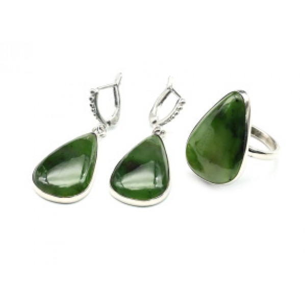 Кольцо и серьги с нефритом