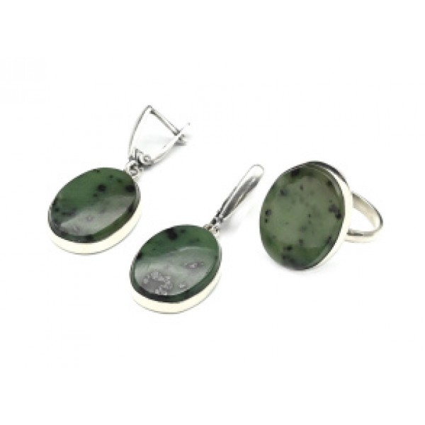 Кольцо и серьги с нефритом "Овал"