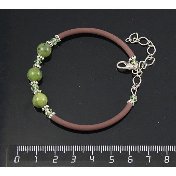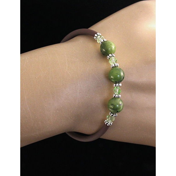 Браслет из нефрита (шарик 8мм) на струнке с хрусталем и бисером