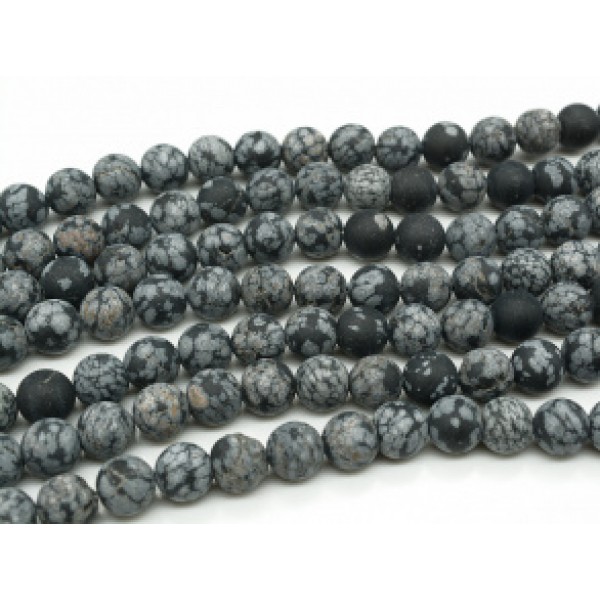 Бусины из обсидиана снежного шарик 12мм матовый, 38см, 32 бусины