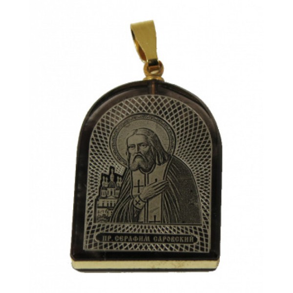 Кулон из обсидиана арка с окантовкой Серафим Саровский 19*25мм