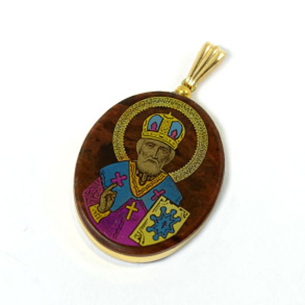 Кулон из обсидиана овал с окантовкой " Николай Чудотворец" 20*30мм