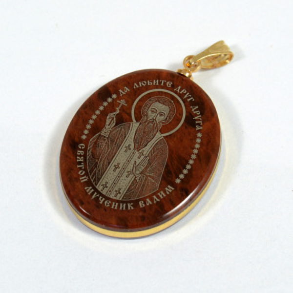 Кулон из обсидиана овал с окантовкой " Св. Вадим " 20*30мм