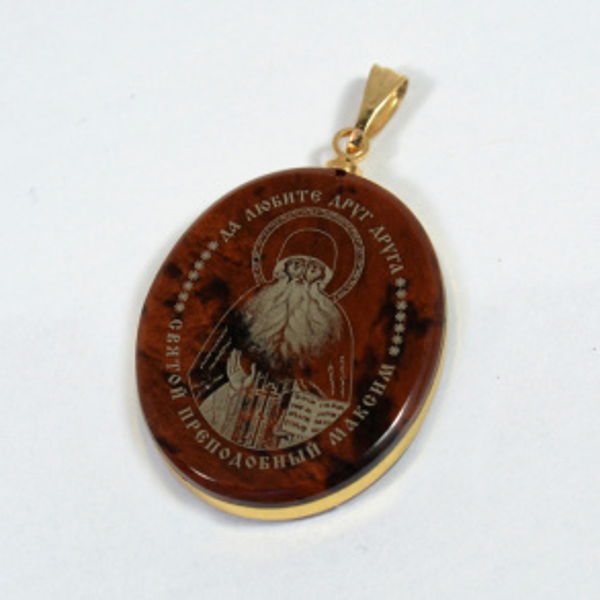 Кулон из обсидиана овал с окантовкой " Св. Максим " 20*30мм