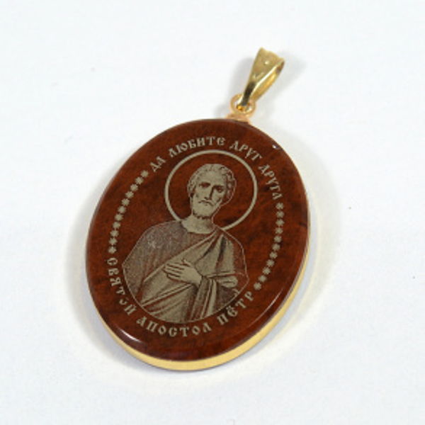 Кулон из обсидиана овал с окантовкой " Св. Петр " 20*30мм