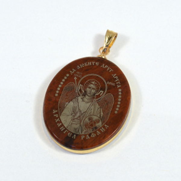 • Кулон из обсидиана овал с окантовкой " Св. Рафаил " 20*30мм