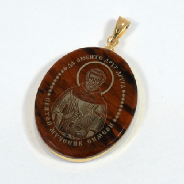 • Кулон из обсидиана овал с окантовкой " Св. Симеон " 20*30мм
