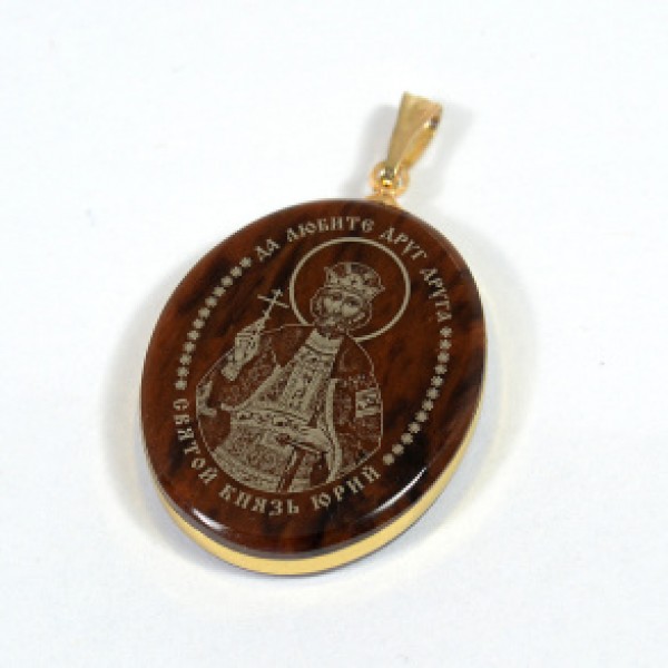 Кулон из обсидиана овал с окантовкой " Св. Юрий " 20*30мм