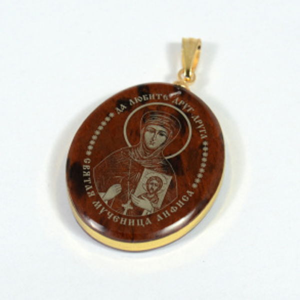 • Кулон из обсидиана овал с окантовкой " Св.Анфиса " 20*30мм