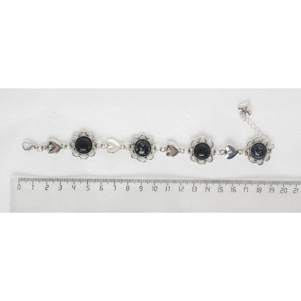 Браслет из агата черного "ромашки и сердечки", круг 12мм