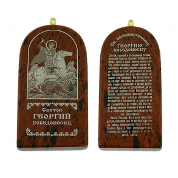 Брелок из обсидиана "Георгий Победоносец" 55*28мм арка