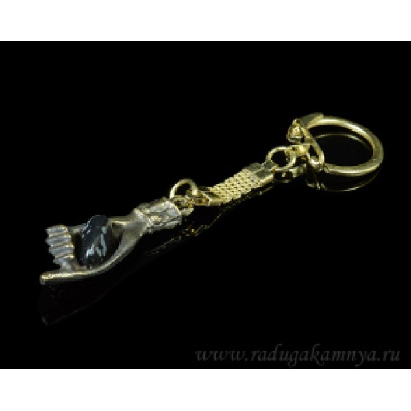 Брелок из бронзы "Рука" с обсидианом снежным, 15*40мм.
