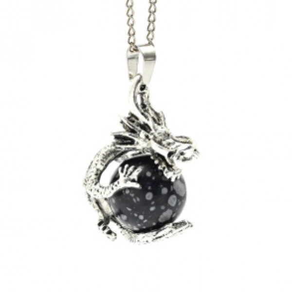 Кулон Дракон на шаре 23*34мм с обсидианом снежным (имитация)