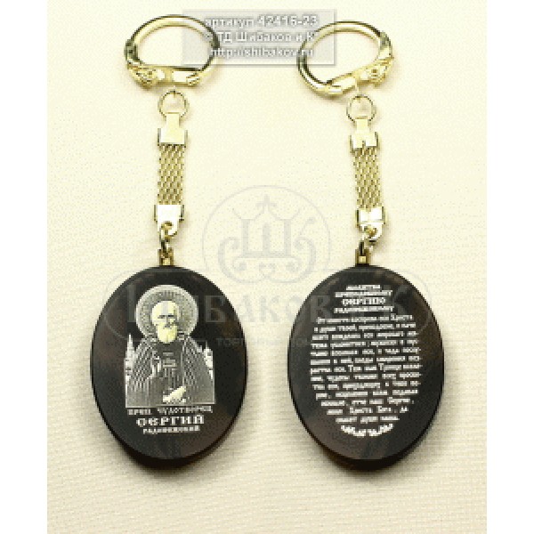 Брелок "Икона Преподобный Сергий Радонежский" овал обсидиан