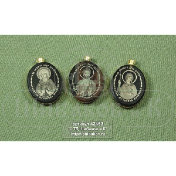 Кулон "Икона именная-ВАЛЕРИЙ" овальный с окантовкой обсидиан