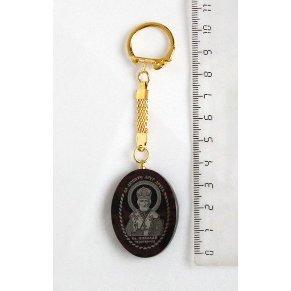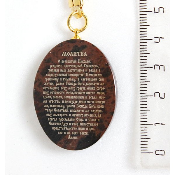 Брелок "Икона Николай Чудотворец" овал, обсидиан
