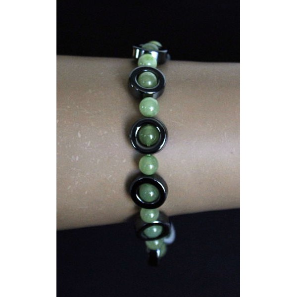 Браслет из оникса, шарик 6мм в круглой рамке из гематита
