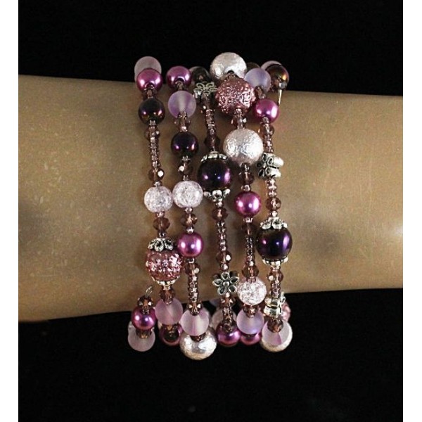Браслет из чароита на струнке 1 оборот с хрусталем и бисером на застежке