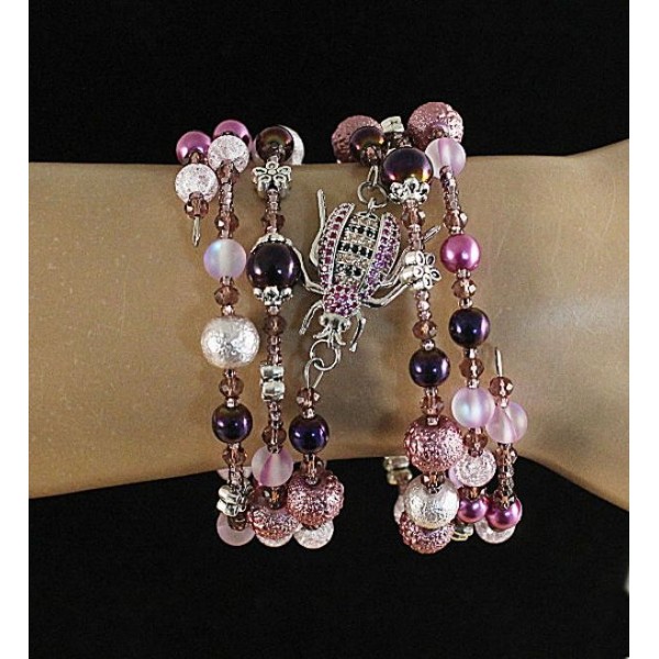Браслет на струнке "малиновый жук" гематит, опал иск., сах.кварц, майорка, акрил
