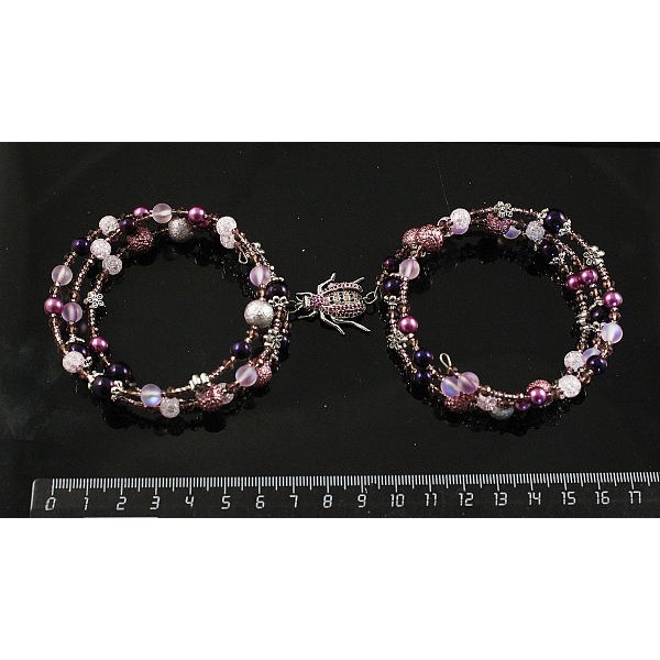 Браслет из чароита на струнке 1 оборот с хрусталем и бисером на застежке